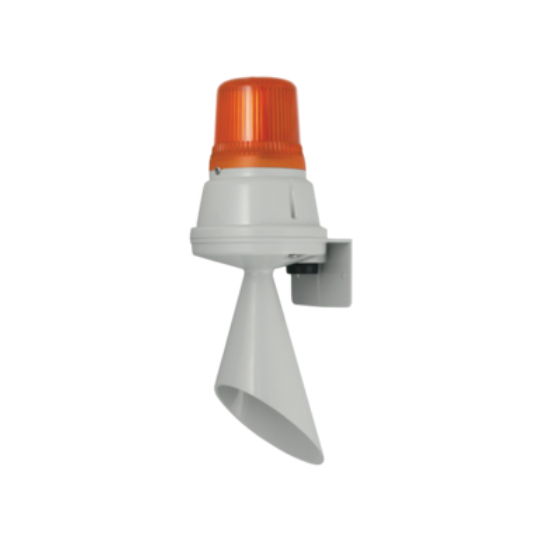 Clasificado para uso continuo, la serie H100 es una señal compacta de alta salida adecuada para una variedad de instalaciones. Además del sonido tipo "zumbador", la unidad presenta otros dos sonidos de alarma.