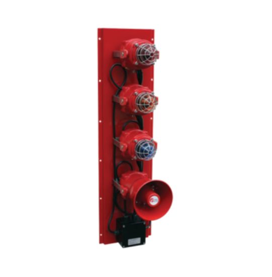 Montado sobre una placa posterior de acero inoxidable, E2S puede ofrecer hasta 5 componentes diferentes completos con la opción de caja de conexiones Exe para simplificar la instalación. Las configuraciones de luces de estado pueden utilizar la baliza LED BExBGL2 de alta potencia. Balizas de advertencia que utilizan tecnología estroboscópica de xenón, disponibles en salidas de 5, 10, 15 y 21 J (hasta 485 Cd) y que brindan una advertencia efectiva en todas las condiciones.
