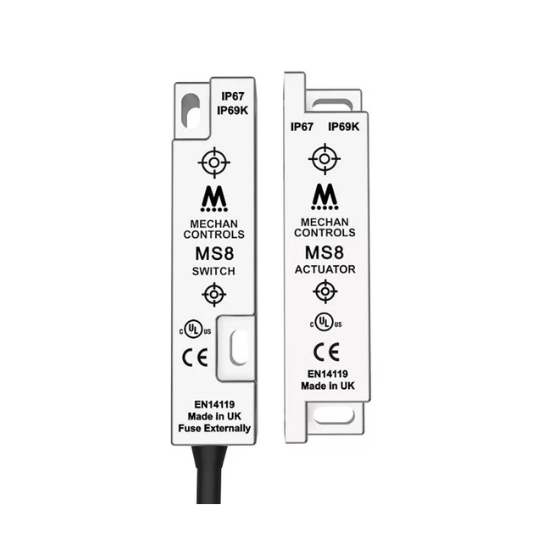Los interruptores de seguridad sin contacto MAGNASAFE MS8-SS son una carcasa estándar de la industria, delgada y que ahorra espacio, hecha de acero inoxidable de grado 316. Totalmente encapsulados, los interruptores de seguridad MS8 han sido diseñados con una distancia de conmutación mayor que la estándar para garantizar una instalación fácil y tolerante a la desalineación. La operación sin contacto tiene una distancia de conmutación de 30 a 50 mm, lo que ayuda a garantizar una vida útil prolongada y sin problemas cuando la alineación de las protecciones es un problema.
