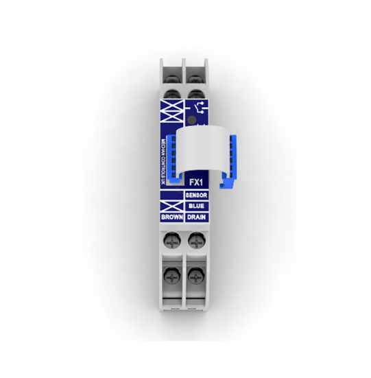 El módulo extensor FX1 agrega una entrada de interruptor de seguridad a un sistema de seguridad Serie F. Se conecta mediante una correa integrada de 6 vías al módulo de control FM1 adyacente (o módulo extensor) y tiene la salida de indicación, LED y contacto libre de voltaje para ese interruptor.