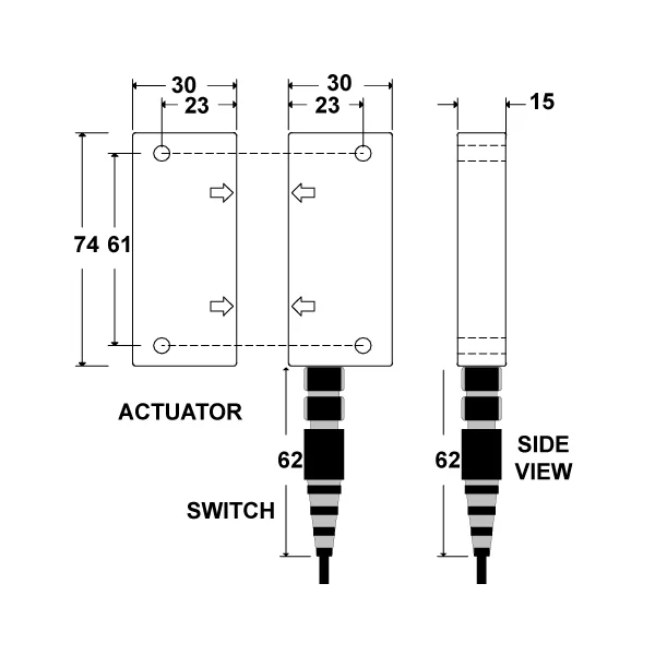 DIMENSIONES DEL ACTUADOR (MM) | 74X30X15MM |