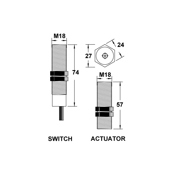 DIMENSIONES DEL ACTUADOR (MM) | M18X57MM |