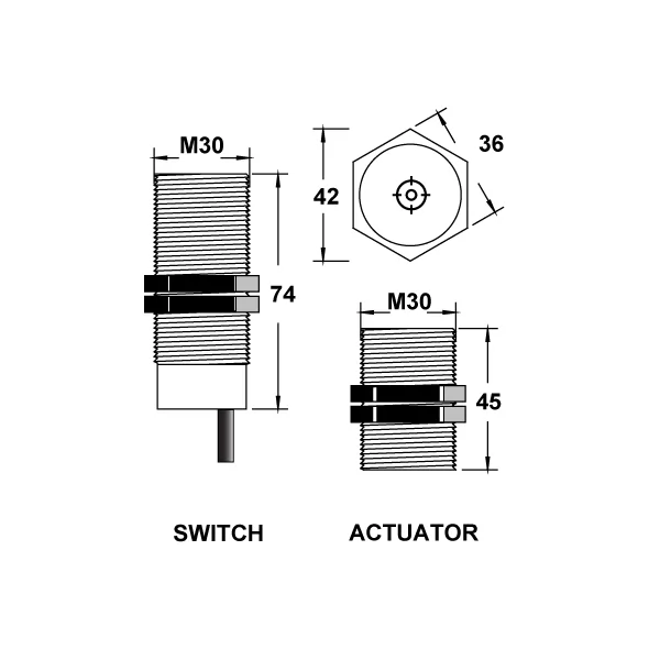 | DIMENSIONES DEL ACTUADOR (MM) | M30X45MM |