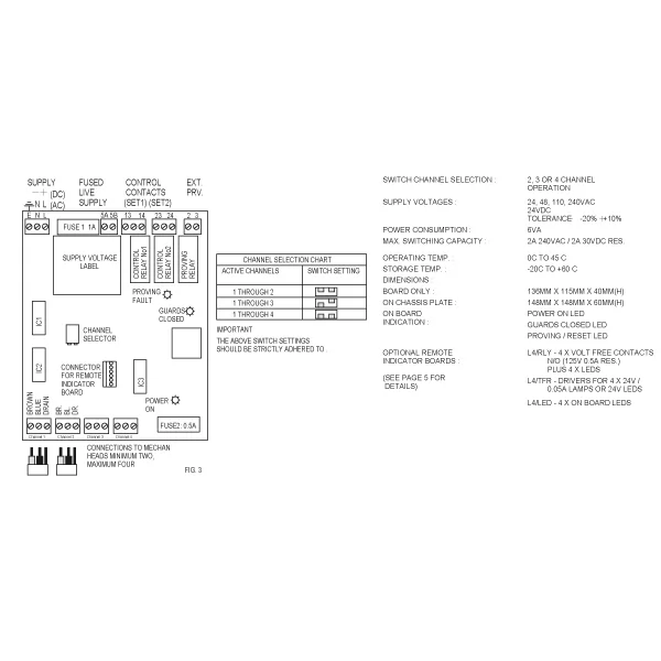 El MPX4 tiene 2 contactos de salida de seguridad NA y un circuito de reinicio/monitoreo para una conexión sencilla a los sistemas de control existentes. Un interruptor DIP montado en la PCB del MPX4 puede configurar la unidad para monitorear entre 2 y 4 interruptores de seguridad Mechan totalmente electrónicos. Montado sobre una placa de chasis, el MPX4 está diseñado para instalarse fácilmente en un panel de control. Los tableros indicadores opcionales brindan a cada entrada de interruptor de seguridad una indicación LED, TFR o estado de contacto libre de tensión.