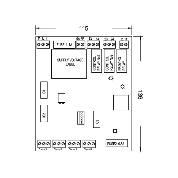 DIMENSIONES DE LA UNIDAD DE CONTROL (MM) | SOLO PCB 136(D) X 115(W) X 40(H)MM / PLACA DE CHASIS |